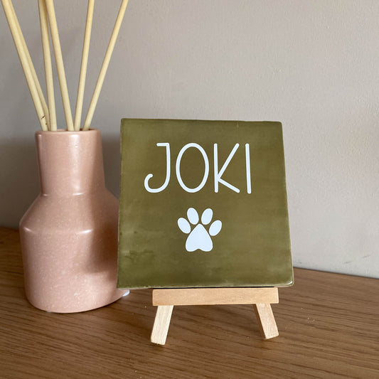 Je kiest voor het gepersonaliseerde tegeltje in de webshop en schrijft de tekst die je op het tegeltje wil in het opmerkingenveld. Mocht je nog speciale wensen hebben, dan kan je ook eerst contact opnemen via social media of Whatsapp. Ik zal dan een ontwerp sturen voor je de bestelling definitief plaatst.