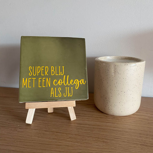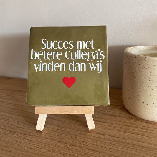 Tegeltje met tekst Succes met leuke collega's vinden als wij