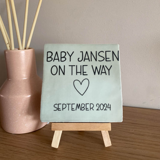 Tegeltje met tekst Baby on the way